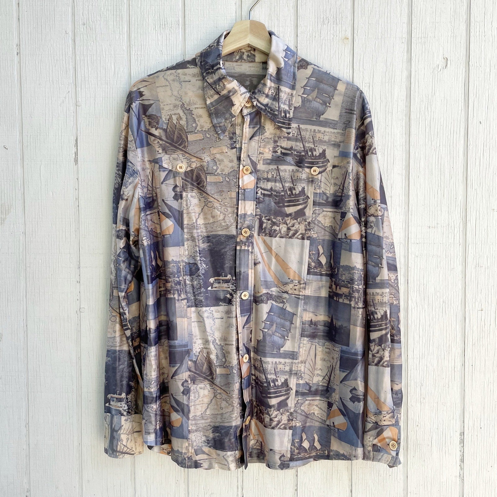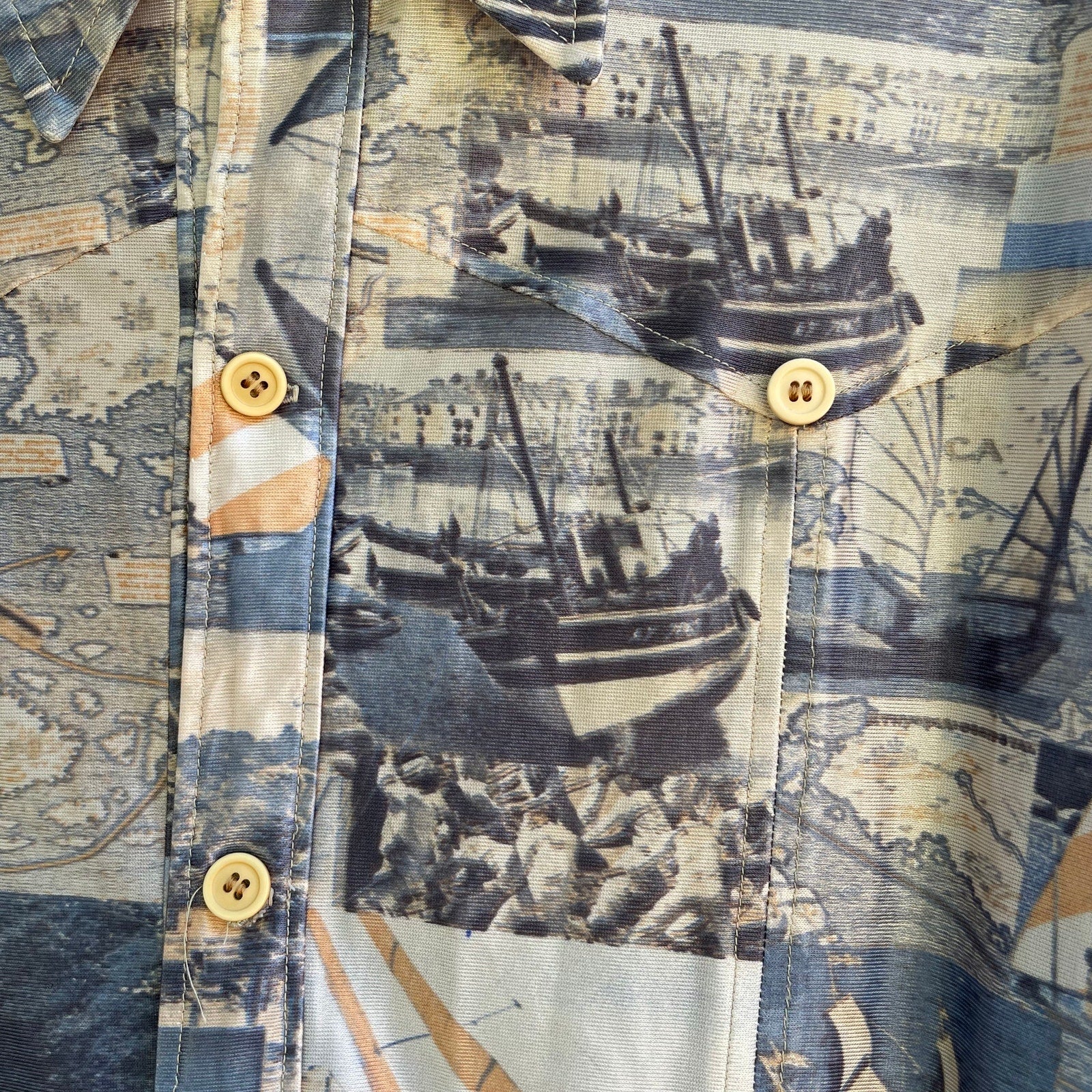 1960s Nautical Psychedelic Polyester Shirt Men's Sz L or XL